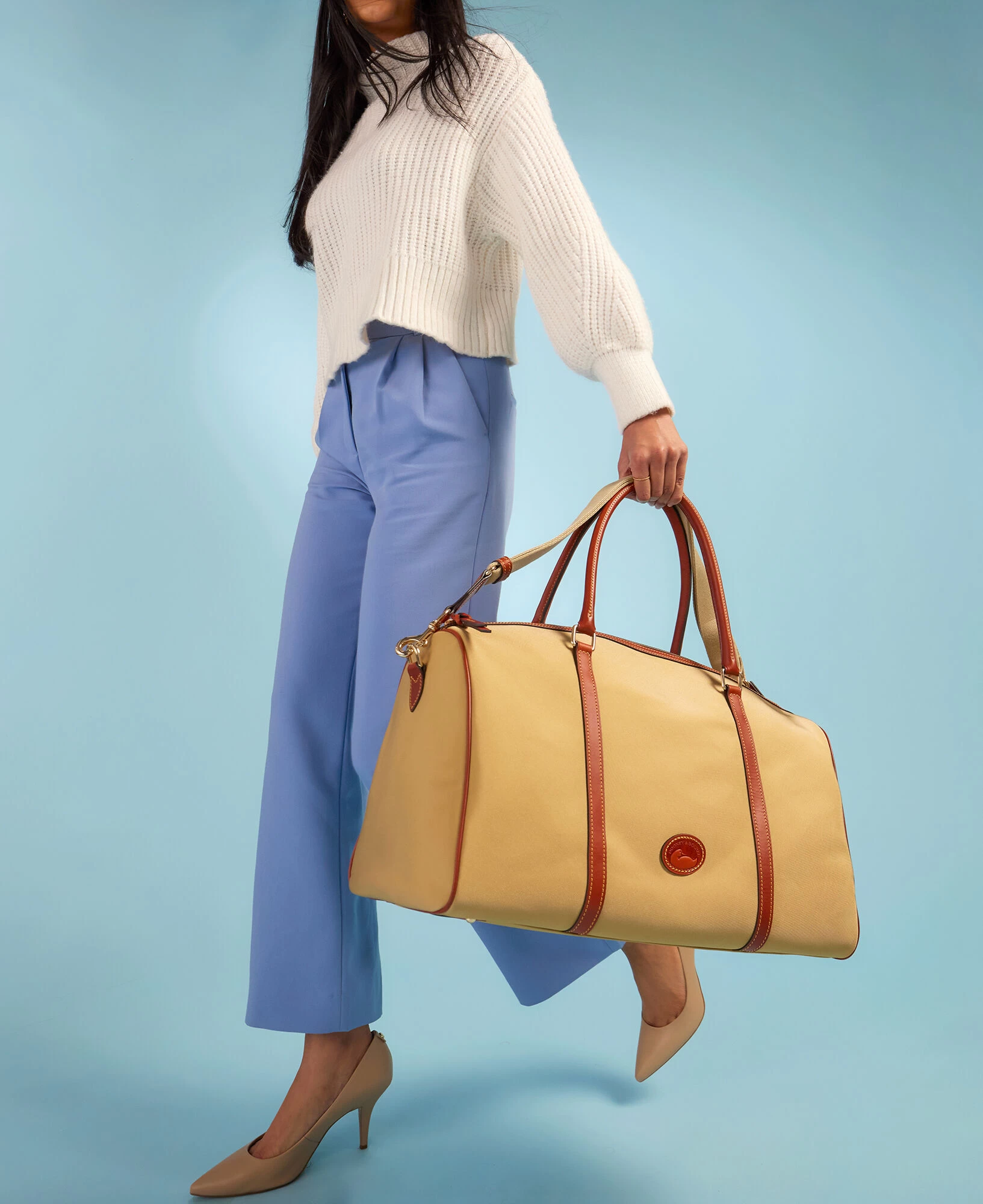 The Vacchetta leather trim and handles will naturally darken over time with use and with exposure to light. No creams, polishes, cleansers, or leather conditioning products should be used on the trim and handles.
