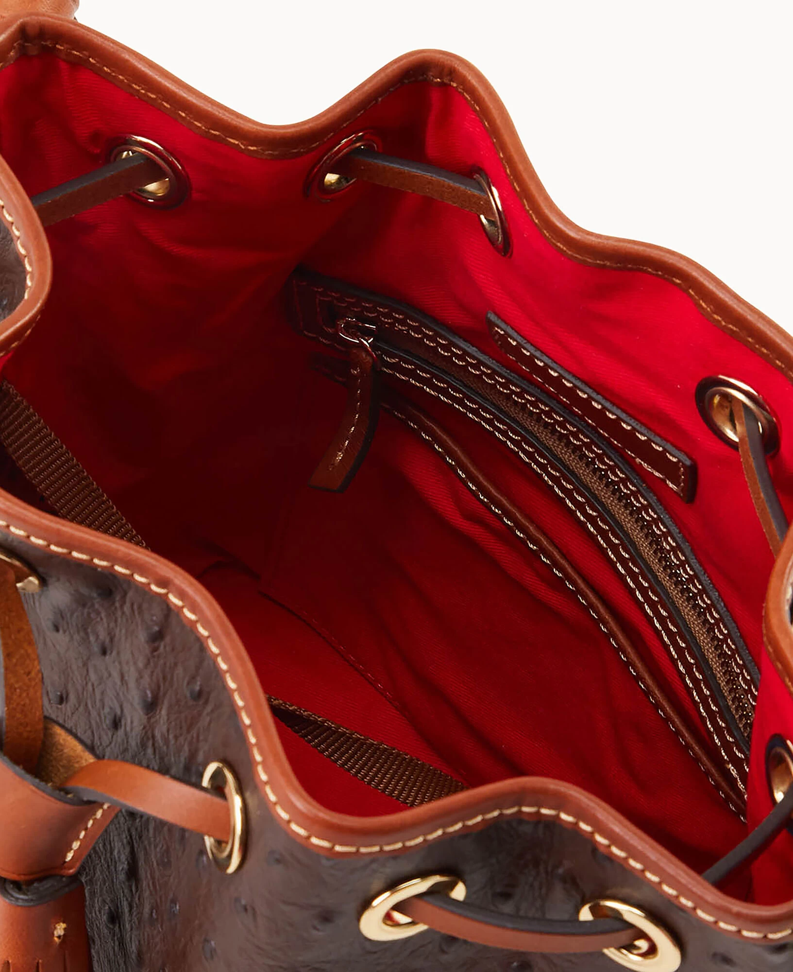The Ostrich Collection has not been specifically treated for water repellency. Thus, the leather will temporarily darken when wet, and return to the original tone once completely dry. The waxed surface may assist in staving off some dirt. With continued use, a lovely shine or patina will develop, only enhancing the beauty of this leather.